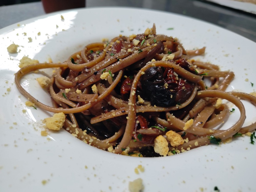 Fileja con il pesce spada, alici ripiene, ‘nduja , e cipolla rossa di Tropea che trovate un po’ ovunque perché sì, in Calabria funziona così. Piatti sinceri, saporiti, che parlano della nostra regione direttamente al vostro palato.